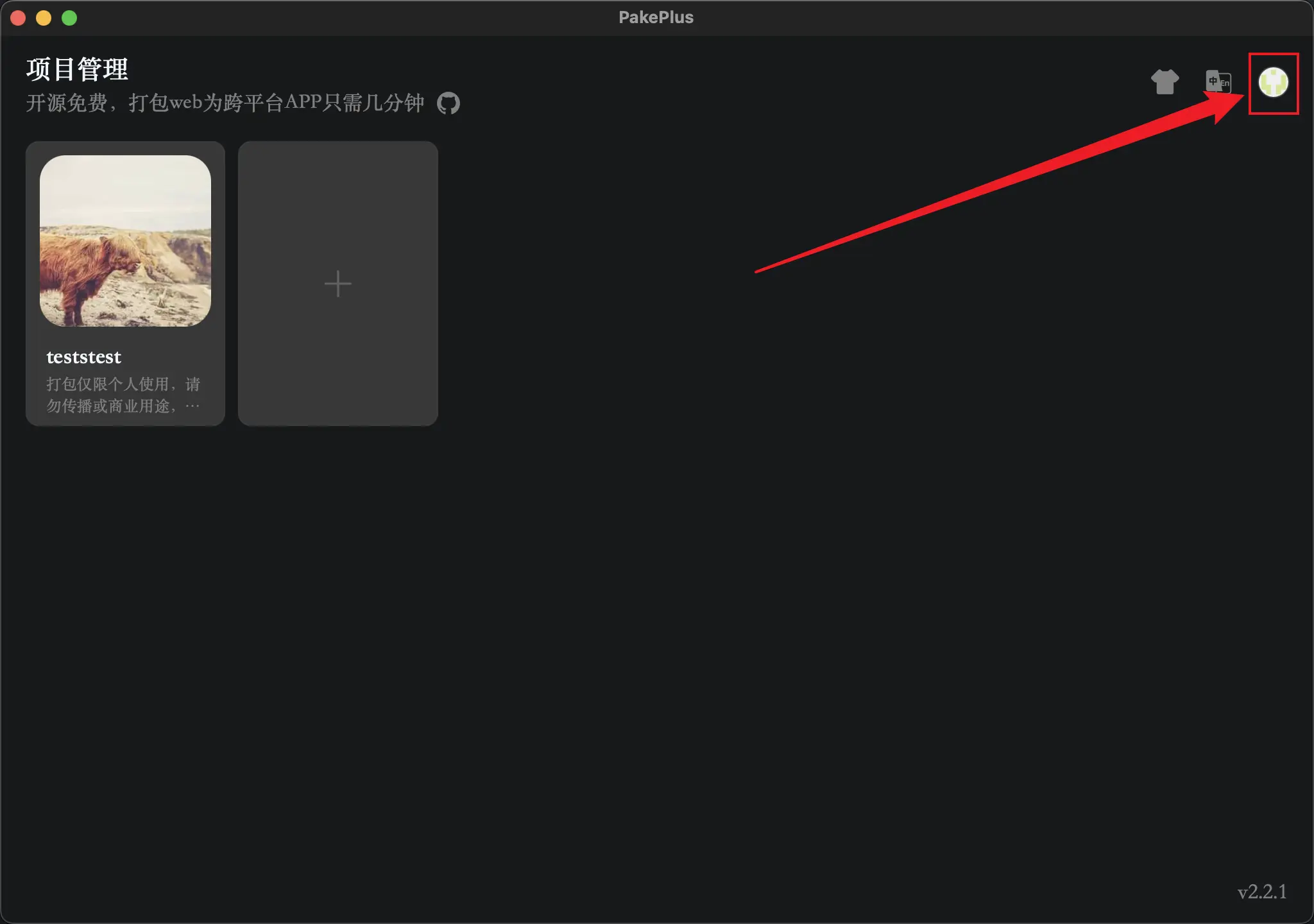拿到激活码之后,到 PakePlus 软件首页右上角,点击头像进入 我的信息 页面: